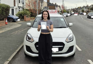 on passing her driving test 1st time with just 2 minors in Colchester with Shirley