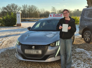 on passing her driving test 1st time with 1 fault in Colchester with Paul. With the snow and sub zero temperatures we didnât think the test would go ahead at 8.10am but it did. Great news for Roxi that it did
